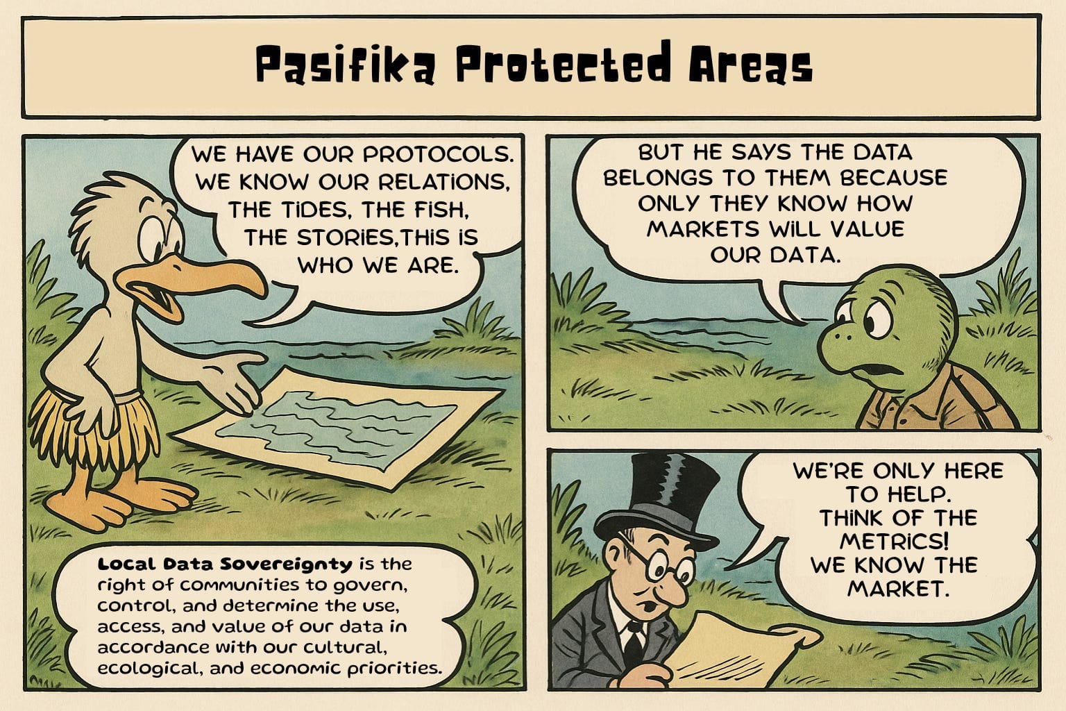 This custody layer matters because regardless of broken contracts and agreements that might take place under FPIC, locally held data will provides communities with leverage. If communities cannot own local markets or initiatives, climate debt relief contracts can smuggle control through technical clauses.